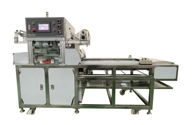 Автоматический конвейерный запайщик лотков с функцией вакуумизации и газации.